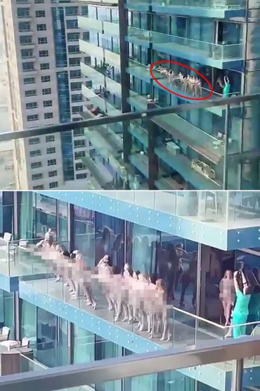 아랍에미리트(UAE) 두바이의 한 빌딩 발코니에서 여성 수십명이 집단으로 옷을 벗고 영상을 찍다가 현지 경찰에 체포됐다.