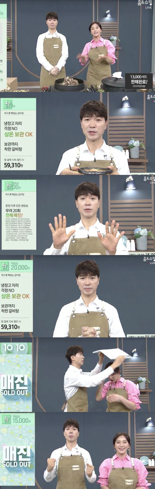 방송말미 긴급소식을 전하며 주문 폭주가 되고 있다고 했다. 만 3천세트 판매 완료했다고. 파트너 진행자는 “방송 사상 제일 빠르게 매진되는 것, 현재 생방송 상황에서도 9천 세트가 이미 품절됐다”고 했고, 박수홍은 “정말 너무 감사하다 , 드릴 말씀이 없다, 너무 감사해서”라면서 “여러분들이 알아주시니 너무 감사하다, 들어오면서 팀들과 보답하자고 얘기해, 착한 제목대로 열심히 하겠다”고 감동했다.