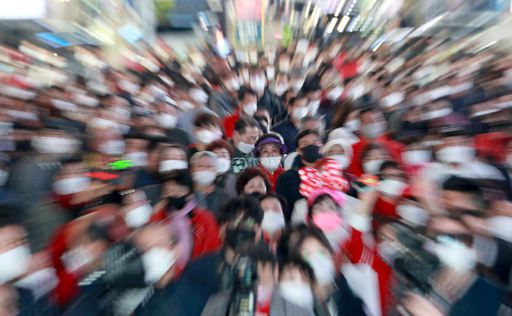 4·7 재보궐선거를 하루 앞둔 지난 6일 부산 부산진구 서면에서 시민들이 국민의힘 박형준 부산시장 후보의 유세를 보고 있다. 부산=뉴스1 |
