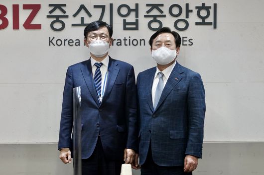 대한상의에 이어 이 실장은 서울 여의도 중기중앙회로 이동, 김기문 회장과도 만났다. 이 자리에서 김기문 회장은 "기업이 앞으로 더 잘하기 위해 협동조합의 활성화와 중기 간 경쟁제품 제도 활성화가 필요하다"며 납품단가조정권과 협동조합의 중소기업자 지위 인정 등을 골자로 한 중소기업기본법 등 잘 만들어진 정책이 잘 작동될 수 있도록 역할을 요청했다.