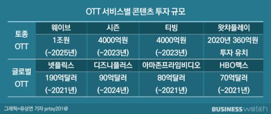웨이브 뿐 아니라 시즌이나 티빙, 왓챠플레이 등 다른 서비스 운영사들도 대규모 투자 계획을 발표한 바 있다.
