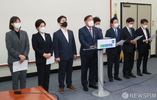 [서울=뉴스핌] 이형석 기자 = 김태년 더불어민주당 대표 직무대행이 8일 오후 서울 여의도 국회에서 4.7 재보궐 선거 패배의 책임을 지고 지도부 사퇴를 발표하고 있다. 2021.04.08 leehs@newspim.com