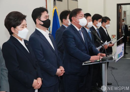 [서울=뉴스핌] 이형석 기자 = 김태년 더불어민주당 대표 직무대행이 8일 오후 서울 여의도 국회에서 4.7 재보궐 선거 패배의 책임을 지고 지도부 사퇴를 발표하고 있다. 2021.04.08 leehs@newspim.com 저작권자(c) 글로벌리더의 지름길 종합뉴스통신사 뉴스핌(Newspim), 무단 전재-재배포 금지