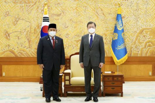 문 대통령은 8일 오후 청와대에서 KF-X 시제기 출고식에 참석하기 위해 방한한 프라보워 수비안토 인도네시아 국방부 장관을 접견하고 "신남방정책을 통해 양국간 전략적 동반자 관계를 더욱 내실있게 발전시켜 나가고자 한다"며 이같이 밝혔다.