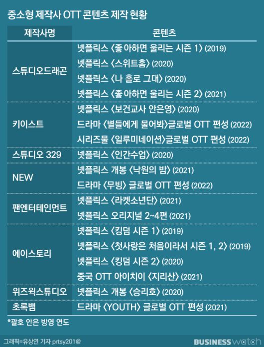 국내외 OTT들은 드라마, 영화 제작 스튜디오를 선점하기 위해 분주한 상태다. 스튜디오드래곤은 10여개 글로벌 OTT와 오리지널 콘텐츠 제작 협의를 진행 중인 것으로 알려졌다. 스튜디오드래곤은 '좋아하면 울리는 시즌 1, 2', '스위트홈', '나 홀로 그대' 등 넷플릭스 오리지널 콘텐츠 주요 제작사다.