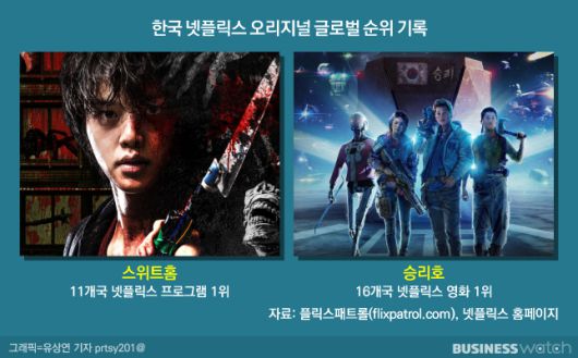 글로벌 소비자 대상으로도 국내 콘텐츠가 선호된다는 점에서 실력있는 제작사 선점은 중요하다. 넷플릭스 순위를 집계하는 플릭스패트롤에 따르면 '승리호'는 넷플릭스가 서비스하는 16개국에서 영화 부문 1위를 차지했다. 네이버 웹툰 원작 드라마인 '스위트홈'은 11개국에서 넷플릭스 프로그램 1위를 기록했다.