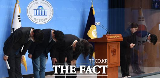 더불어민주당 내부에서 선거 패배 책임과 쇄신 방향에 관한 이견이 표출되면서 논쟁이 격화하는 모양새다. 지난 9일 국회 소통관에서 민주당 전용기·오영환·이소영·장경태·장철민 의원이 '2030 의원 입장문' 발표에 앞서 허리를 숙여 인사하는 모습. /남윤호 기자 |