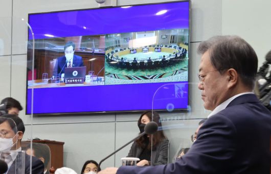 한편 문 대통령은 이날 서울시장(장관급 국무위원)으로 국무회의 첫 참석한 오세훈 서울시장에게 당선 축하 인사를 건넸다. 오 시장은 이날 서울시 청사에서 화상으로 국무회의에 참석했다.