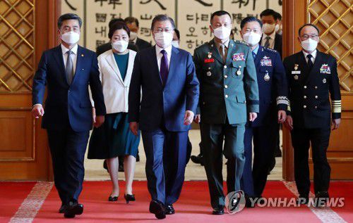 청와대는 "국민의 신뢰를 받을 수 있도록 빈틈없는 국방을 당부하는 의미를 담은 꽃다발"이라고 설명했다.