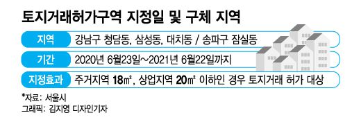 13일 서울시 등에 따르면 서울시는 최근 송파구청과 강남구청 등 자치구에 토지거래허가구역 해제 또는 재지정을 위한 의견수렴 절차에 착수했다. 서울시는 송파구 잠실동, 강남구 삼성·청담·대치동 등 4곳에 대해 지난해 6월23일부터 올해 6월22일까지 토지거래허가구역으로 지정했다. 이 지역에서 아파트 등 주택 구입시 실거주 목적이 아니면 거래할 수 있다. 잠실 마이스(MICE) 개발사업, 영동대로 지하공간 복합개발 등 개발 호재로 집값이 들썩거리자 1년간 토지거래를 제한적으로만 허용한 것이다.