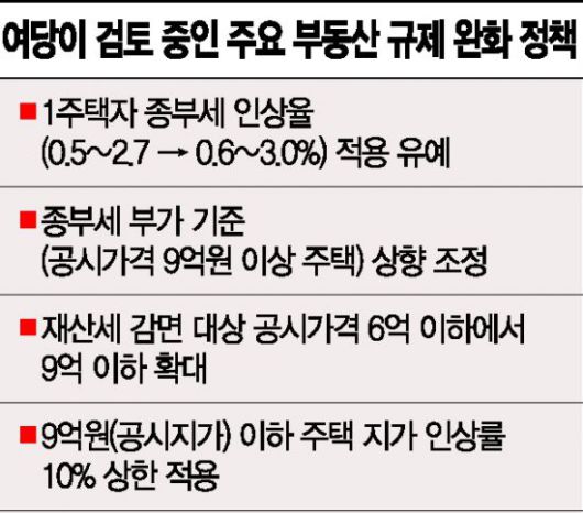 14일 국회에 따르면 여당은 금융·세제 완화를 골자로 하는 부동산 정책 규제 완화에 나서고 있다. 더불어민주당 정책위원회를 주축으로 한 부동산안정TF에서는 주택담보인정비율(LTV)과 총부채상환비율(DTI) 완화를 비롯해 재산세 감면 대상 확대, 공시지가 인상률 상한 적용, 종부세 부가기준 상향 등이 집중적으로 검토될 예정이다.