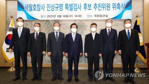 (서울=연합뉴스) 홍규빈 기자 = 세월호 참사 7주기를 이틀 앞둔 14일 세월호 참사 사건의 '증거자료 조작·편집 의혹' 진상규명을 위한 특별검사 후보 추천위원회가 공식 출범했다.
