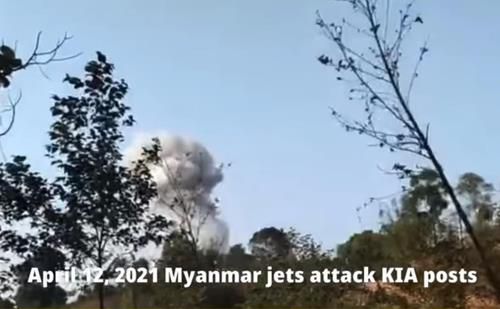 미얀마군 전투기가 카친독립군이 점령한 초소를 공습한 모습 |