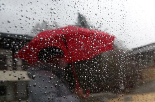 광주 서구 무각사에 주차된 차창에 우산 쓴 시민이 투영된 모습. 연합뉴스 |