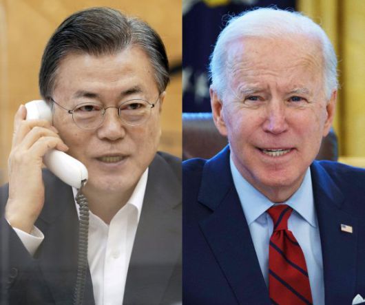 문재인 대통령이 지난 2월4일 오전 청와대에서 조 바이든 미국 대통령과 전화통화를 하고 있는 모습. (청와대 제공, AFP뉴스1) |
