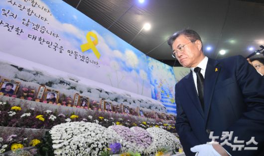문 대통령은 "슬픔에 함께하고, 고통에 공감하면서 우리는 진실에 다가가고 있다"며 "지금의 위기도, 언제 닥칠지 모를 어떤 어려움도 우리는 이겨낼 것"이라고 다짐했다.