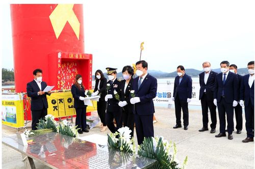 추모행사는 코로나19 사회적 거리두기 지침을 준수해 이동진 진도군수, 박금례 진도군의회 의장 등이 참석해 간소하게 진행됐다.