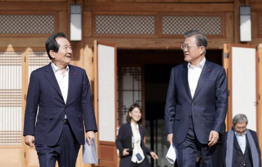 문재인 대통령(오른쪽)과 정세균 국무총리(사진=뉴시스) |