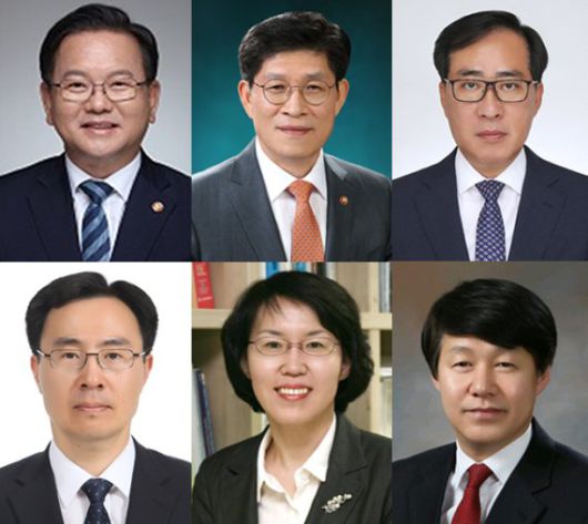 (서울=뉴스1) = 문재인 대통령이 16일 문재인 정부 마지막 국무총리에 김부겸 전 행정안전부 장관을 지명하고 5개 부처 장관을 교체하는 개각을 단행했다. 윗줄 왼쪽부터 시계방향으로 국무총리에 지명된 김부겸 전 행정안전부 장관, 국토교통부 장관에 노형욱 전 국무조정실장, 해양수산부 장관에 박준영 해양수산부 차관, 고용노동부 장관에 안경덕 경제사회노동위원회 상임위원, 과학기술정보통신부 장관에 임혜숙 국가과학기술연구회 이사장, 산업통상자원부 장관에 문승욱 국무조정실 국무2차장(56). (청와대 제공) 2021.4.16/뉴스1 /사진=뉴스1화상 |