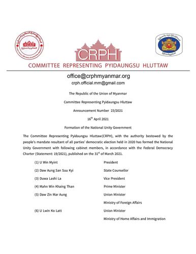 2월 1일 쿠데타로 문민정부가 무너지고 군사정부가 들어선 지 75일째 만에 민주진영이 소수민족 인사들을 포진시킨 독자 정부를 구성함에 따라 미얀마 쿠데타 사태는 변곡점을 맞게 될 전망이다.