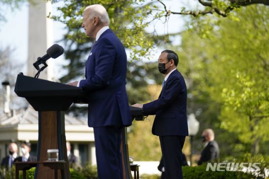 바이든 대통령은 이날 백악관에서 스가 총리와의 취임 후 첫 대면 정상회담을 가진 뒤 로즈가든에서 공동 기자회견을 열고 이 같이 밝혔다고 로이터 통신이 전했다.