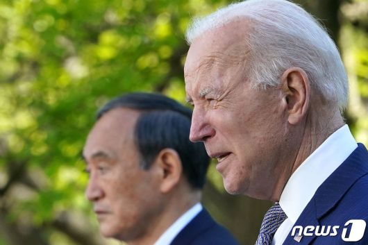 조 바이든 미국 대통령이 16일(현지시간) 워싱턴 백악관에서 스가 요시히데 일본 총리와 취임 후 첫 대면 정상회담을 마친 뒤 공동 기자회견을 하고 있다. © AFP=뉴스1 © News1 우동명 기자 |