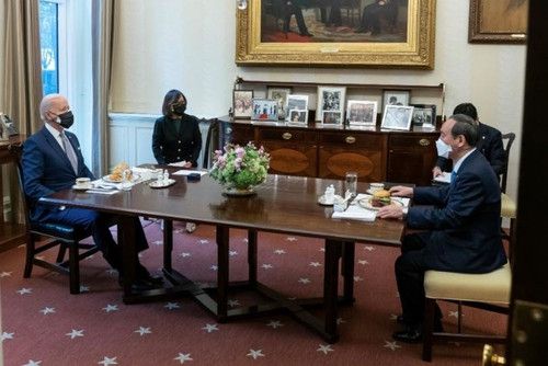 18일 일본 니혼게이자이신문에 따르면 바이든 대통령과 스가 총리는 현지시간 16일 열린 본격적인 회담에 앞서 통역만 동석한 가운데 약 20분간 식사를 겸해 일대일로 대화를 나눴는데 이를 요구한 것이 스가 총리였다.