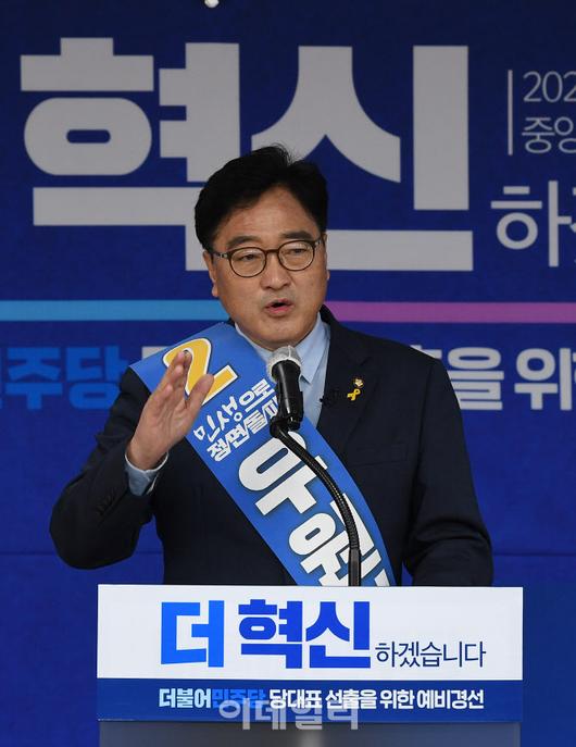 [이데일리 방인권 기자] 우원식 더불어민주당 당대표 예비후보가 18일 서울 영등포구 더불어민주당 중앙당사 대강당에서 열린 더불어민주당 당대표 선출을 위한 예비경선대회에서 정견 발표를 하고 있다.