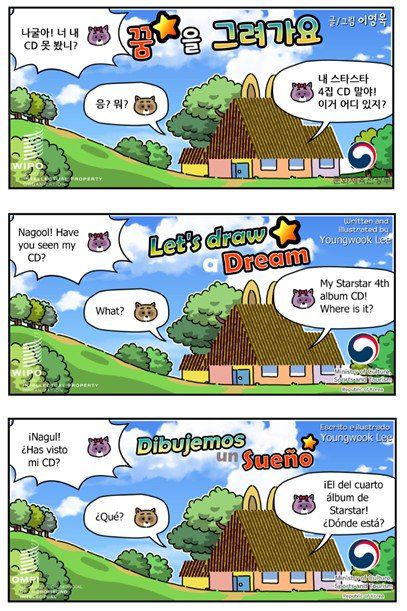 만화 ‘꿈을 그려가요’ 한국어본, 영어본, 스페인어본 첫 페이지 /사진=문화체육관광부 |