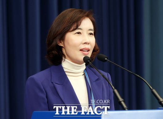 박경미 청와대 대변인이 지난 18일 오후 청와대 춘추관에서 브리핑하는 모습. /뉴시스 |