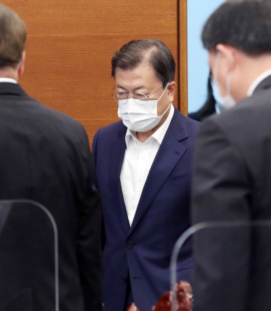 문재인 대통령이 19일 오후 청와대에서 열린 수석·보좌관회의에 참석하고 있다.(사진=연합뉴스) |