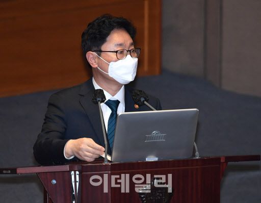 [이데일리 방인권 기자] 박범계 법무부 장관이 19일 오후 서울 여의도 국회 본회의장에서 열린 제386회(임시회) 제1차 본회의 정치·외교·통일·안보 대한 대정부질문에서 의원의 질의에 답하고 있다. |