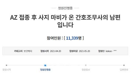 자신이 간호조무사 A씨의 남편이라고 자신을 소개한 청원인은 “백신 접종을 하고 사망했거나 후유증을 앓고 계시거나 앞으로 같은 피해를 볼 수 있는 국민을 위해 용기를 냈다”며 이렇게 강조했다.