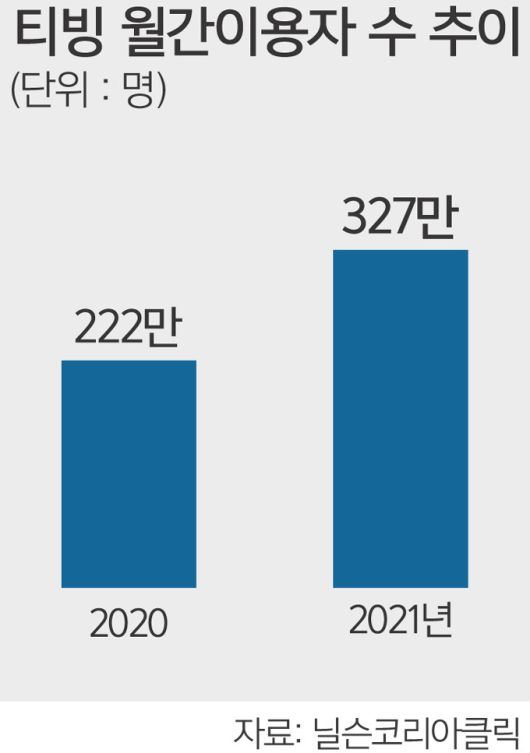 20일 닐슨코리아클릭에 따르면 올해 3월 기준 티빙의 MAU(월간이용자수)는 327만명으로 집계됐다. 지난해 10월 CJ ENM으로부터 분리해 독립법인으로 출범하기 직전인 2020년 9월(MAU 222만명)과 비교하면 6개월 만에 월사용자수가 100만명 이상 큰 폭으로 증가한 셈이다.