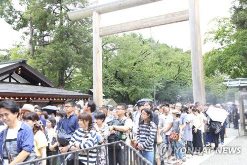 일본 야스쿠니신사에 늘어선 참배자들 |