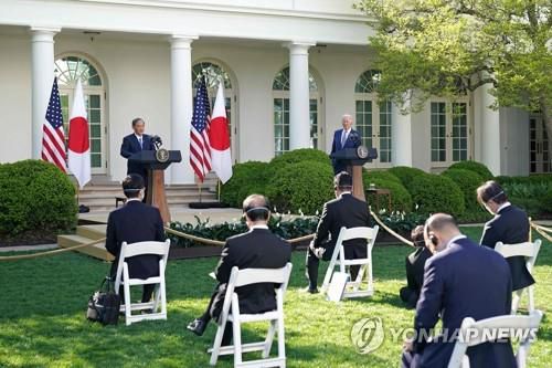 기자회견하는 바이든과 스가 |