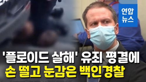 (서울=연합뉴스) 지난해 미국 미니애폴리스에서 흑인 남성 조지 플로이드의 목을 무릎으로 짓눌러 살해한 전 백인 경찰관에게 배심원단의 만장일치 유죄 평결이 내려졌습니다.