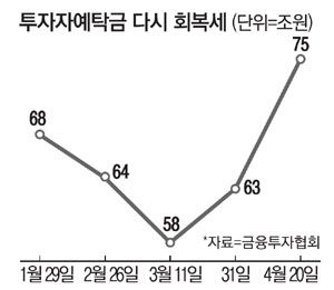 투자자예탁금은 올해 초(1월 12일) 74조4559억원까지 증가한 후 주식시장이 지루한 횡보 국면에 접어들자 지난달 11일 57조6372억원까지 빠졌다. 하지만 2분기 이후 유동성 장세에서 실적 장세로 넘어가면서 주요 기업에 대한 실적 전망치가 올라가자 지난 20일 기준 75조7884억원까지 증가하며 사상 최대치 기록을 갈아치웠다. 최근 일주일 새 투자자예탁금은 12조1865억원 증가했다.