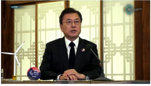 문 대통령은 "한국은 2018년에 온실가스 배출의 정점을 기록했고, 이후 2년에 걸쳐 배출량을 2018년 대비 10% 이상 감축한 바 있다"며 그간의 성과도 밝혔다.