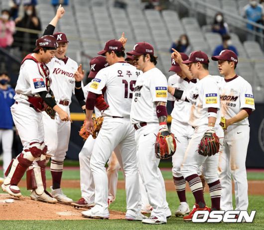 박병호가 대타로 나오지 않아도 될 만큼 타선이 모처럼 집중력을 발휘했다. 11안타 6볼넷으로 8득점. 마운드도 선발투수 한현희가 5이닝 3실점으로 막은 뒤 6회부터 불펜 필승조를 총동원했다. 김성민(1이닝) 김재웅(⅔이닝) 양현(⅓이닝) 김태훈(1이닝) 조상우(1이닝)가 4이닝 무실점을 합작했다. 김성민이 3일 연속 등판하고, 5점차 리드에서 마무리 조상우를 투입하는 등 총력전 끝에 7연패 마침표를 찍었다. /waw@osen.co.kr
