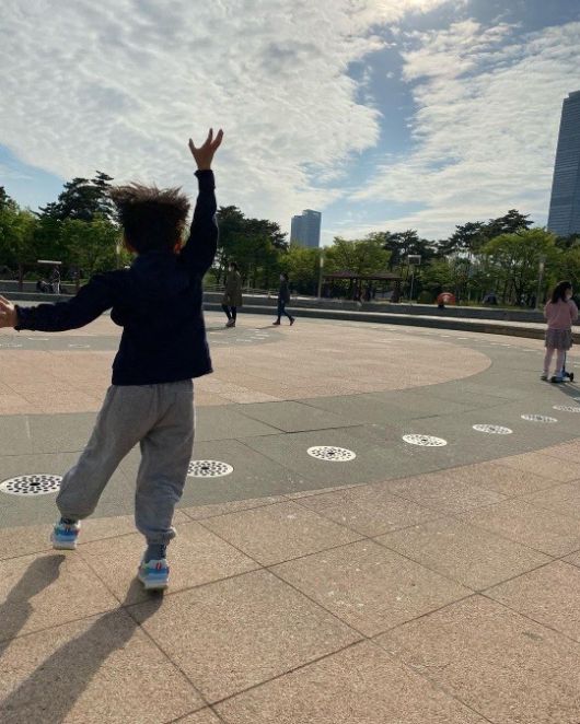 공개된 사진 속에는 정경미가 공원에서 신이 난듯 뛰고 있는 뒷모습이 담겨 있다. 잔뜩 흐트러진 머리가 정경미의 높은 텐션을 눈치채게 한다.