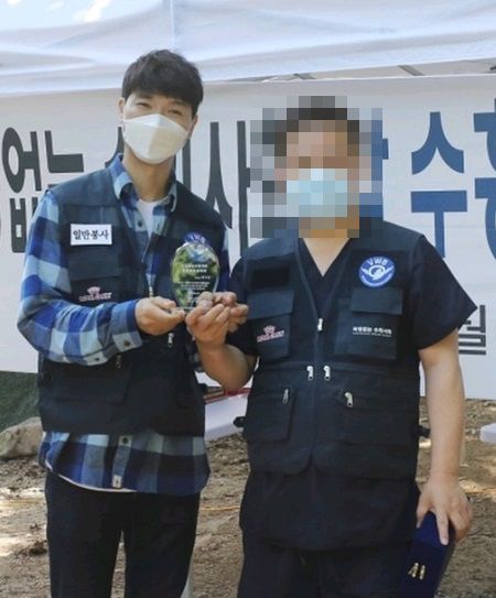 사진 속에는 홍보대사 위촉패를 받고 환하게 웃고 있는 박수홍의 모습이 담겨 있다.