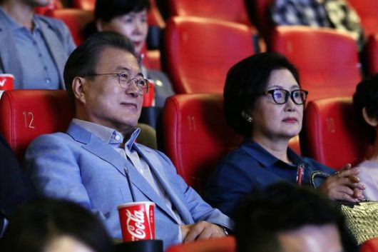 문재인 대통령이 작년 6월 23일 서울시내 한 극장에서 영화 '기생충'을 보고 있다. |