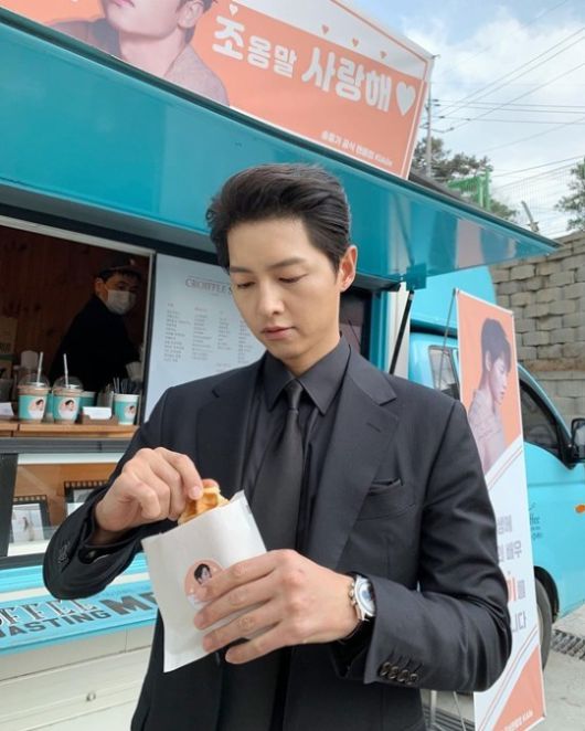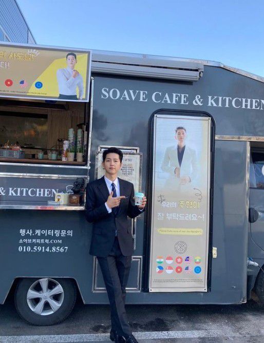 [스포츠월드=유수연 온라인 뉴스 기자] 배우 송중기가 팬들의 커피차를 인증하며 감사의 마음을 전했다.