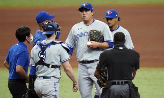 호투를 펼치던 류현진(34·토론토 블루제이스)이 둔부 통증으로 갑작스럽게 자진 강판하며 시즌 2승 달성을 다음 기회로 미뤘다. 그래도 경기 뒤 인터뷰를 통해 심각한 부상이 아니라고 밝혀 안도의 한숨을 쉬게 했다.