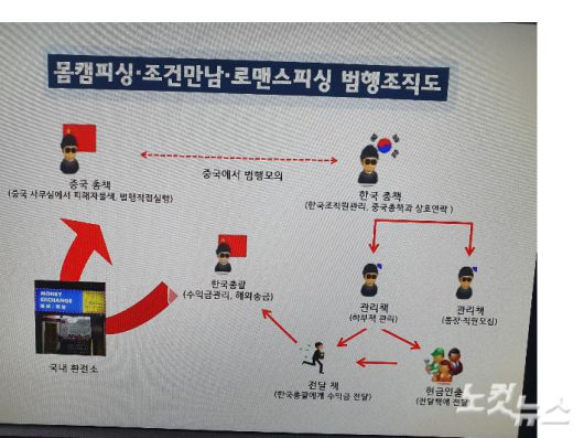 A씨 등은 지난해 1월부터 지난달까지 1년 넘게 중국에 본부를 두고 남녀 75명을 상대로 몸캠피싱, 조건만남, 로맨스피싱 범죄를 저지른 혐의를 받는다.