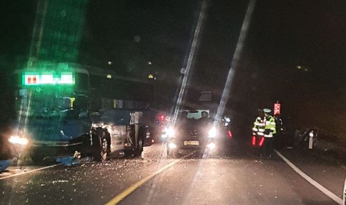 27일 제주동부경찰서에 따르면 전날 오후 10시 35분께 제주시 용강동 마방목지 인근 516도로에서 서귀포시 방면으로 주행하던 산타페 승용차가 중앙선을 넘어 마주 오던 버스와 부딪쳤다.