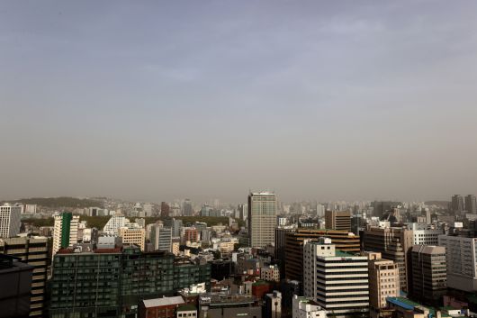 중국·몽골발 황사가 찾아온 지난 3월 16일 오후 서울 종로구 일대 도심이 뿌옇다. [연합] |