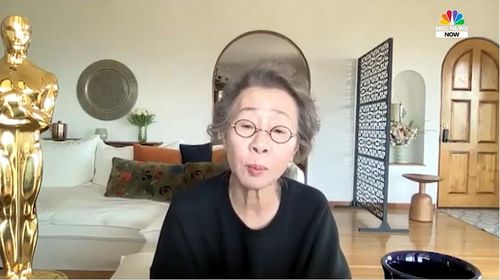 아카데미 여우조연상을 받은 윤여정 |