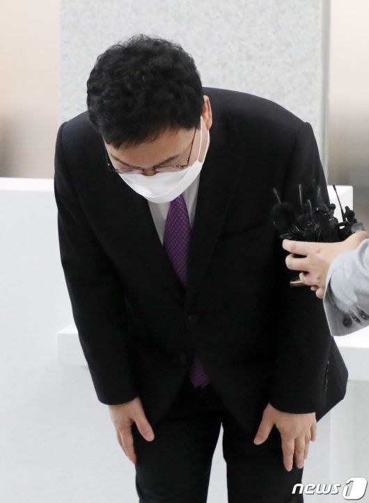 이스타항공 관련 횡령·배임 혐의로 구속영장이 청구된 이상직 무소속 의원(전주을)이 27일 영장실질심사(구속전 피의자 심문)를 위해 전주지법에 출석, 취재진을 향해 고개숙여 인사하고 있다. 2021.4.27/뉴스1 © News1 유경석 기자 |